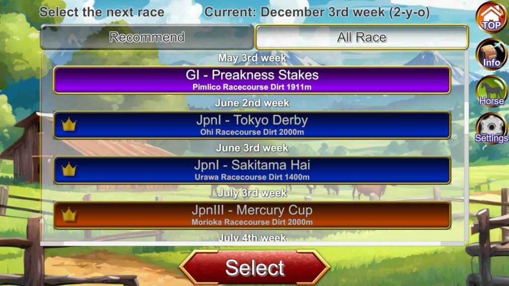With the addition of the Preakness Stakes, Ver1.28 also introduces support for shorter breaks between races, making it easier to recreate a tight U.S. Triple Crown schedule in-game.