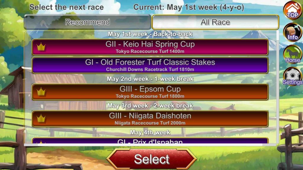 Due to this change, the race selection screen now starts from races with a three-week break.